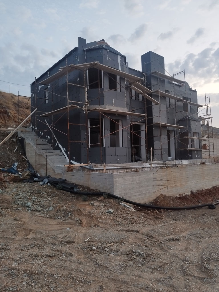 Εγκατάσταση θερμοπρόσοψης σε μια υπάρχουσα βίλλα, ένα έργο που μεταμορφώνει ριζικά τόσο την ενεργειακή απόδοση όσο και την αισθητική της κατοικίας.