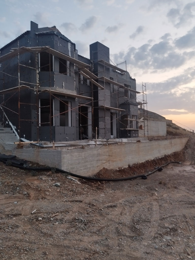 Τελική Επίστρωση: Η επιλογή έγινε με γνώμονα τη μοναδική αισθητική που επιθυμούσε ο ιδιοκτήτης. Τοποθετήθηκε οργανωμένη (ελαστικά) αποχρωματισμένη σοβάδα, προσφέροντας μια ομοιόμορφη, σύγχρονη και ανθεκτική όψη. Η παλέτα χρωμάτων και η υφή επιλέχθηκαν για να εναρμονιστούν με το αρχιτεκτονικό πλαίσιο και το περιβάλλον.