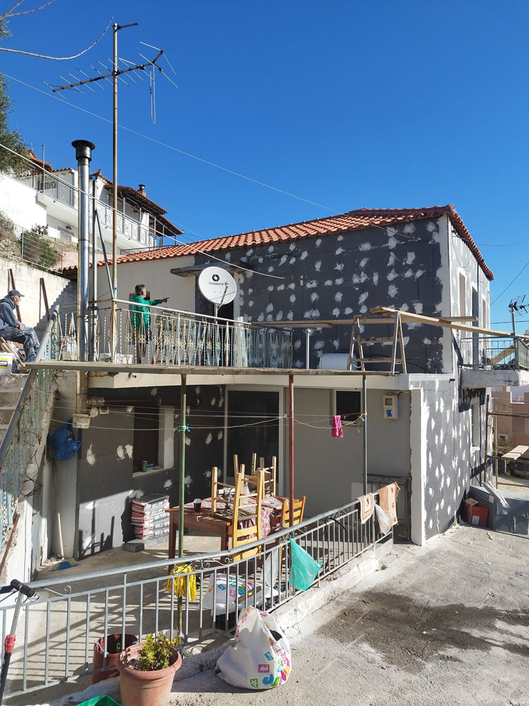 Έργο εγκατάστασης θερμοπρόσοψης σε ένα μικρό σπίτι. Η στοχευμένη και έξυπνη επέμβαση αποτέλεσε την ιδανική λύση για την αναβάθμιση της κατοικίας, προσφέροντας άμεσα οφέλη χωρίς την ανάγκη εκτενούς και δαπανηρών δομικών εργασιών.
