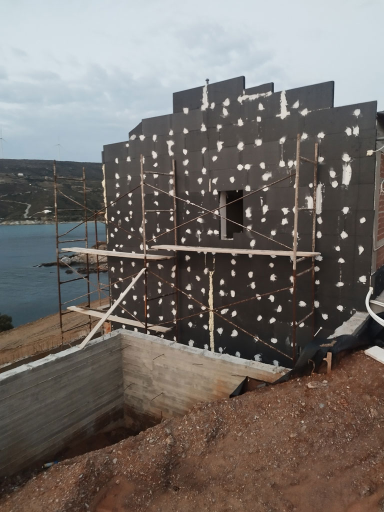Εγκατάσταση θερμοπρόσοψης σε μια υπάρχουσα βίλλα, ένα έργο που μεταμορφώνει ριζικά τόσο την ενεργειακή απόδοση όσο και την αισθητική της κατοικίας.